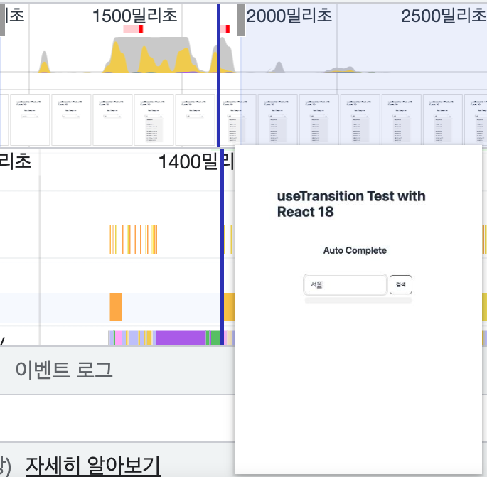 그리고 “서울"이라고 다 입력했을 때의 상호작용 시간을 보겠습니다.