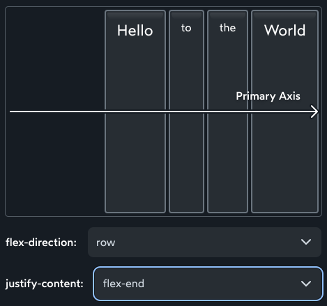 위 그림은 flex-direction: row와 justify-content: flex-start일 때 입니다.