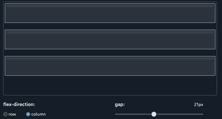 여기서 gap 항목은 각 항목 사이즈 갭을 지정하는 역할을 하기 때문에 쉽게 멋진 UI를 만들 수 있을 겁니다.
